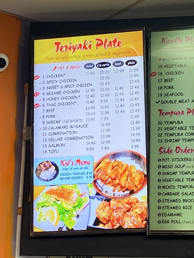 “ I came to this location during the pandemic. I wasn't too impressed then. I get the same thing each time, the spicy Thai chicken plate. The last time the chicken didn't seem chard enough. This time the chicken was perfect. It has returned to what I remember. I visit other locations of this chain throughout the year. The service as good. Got our meal fairly quickly. The facility is cleaned and maintained. I rated this 4 stars since they took off the macaroni salad off the menu. Also they removed the little section where you could serve yourself teriyaki sauce, hot sixes and other items. ”